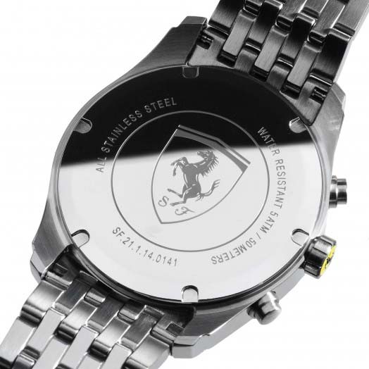 “Scuderia”, Ferrari's most classic watch line, boasts a timeless style with traditional male details, including its 44 mm case.